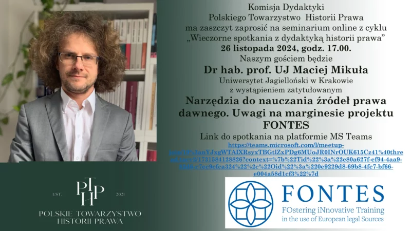 Wieczorne Spotkania z Dydaktyką Historii Prawa – 26.11.2024 r.